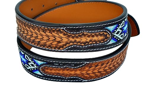 Western Genuine Leather Beaded Belt Tooled Basket Weave Beaded Belt for Men and Women 30AB007 1
