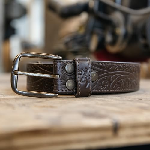 • BROWNING MEN'S CITORI LEATHER BELT | Full grain embossed leather with Citori's scroll design provides a western feel to the belt. Zinc alloy buckle ensures strength and performance to complete this belt