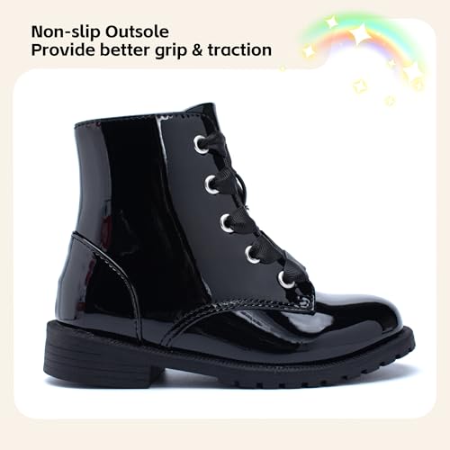 ICEBIRDS Girls Boys Combat Boots Side Zipper Ankle Shoes with Lace Up (Toddler/Little Kid) 5