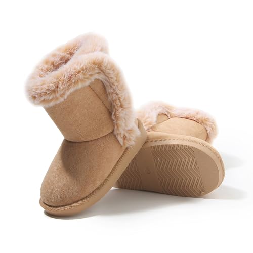HOT ! LONSOEN Kids Girls Boys Winter Warm Boots Suede Lightweight Faux Fur Lined Mid Calf Snow Boots for Toddler/Little Kid