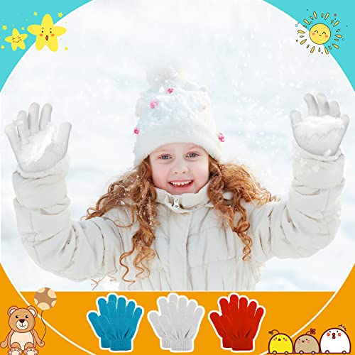 Handepo 48 Pieces Kids Gloves Bulk Stretchy Toddler Knit Warm Kids Winter Gloves Mittens Finger for Boys Girls(Yellow, Lake Blue, White, Black, Red, Gray) 3