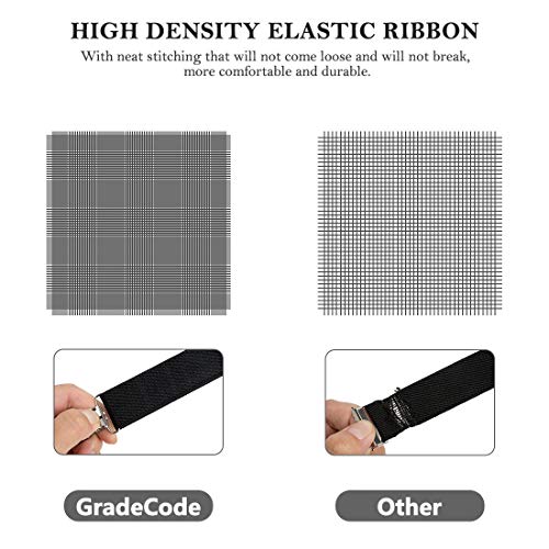 • HIGH QULITY: These Y back suspenders made of high density elastic ribbon, senior durable metal and soft hand-stitched black leather, comfortable and durable. Our elastic suspenders will not fade and not shrink after countless washes, making a heavy-use accessory to guaranteed longevity.