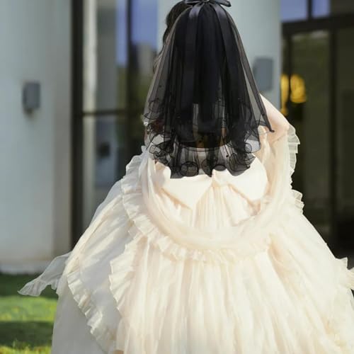 Black Lace Veil for Wedding and Engagement Celebrations with Comb, 60-80cm/23.62-31.50inch Bridal Headpiece for Formal Dresses and Photography- With Clip Bow Decor 5