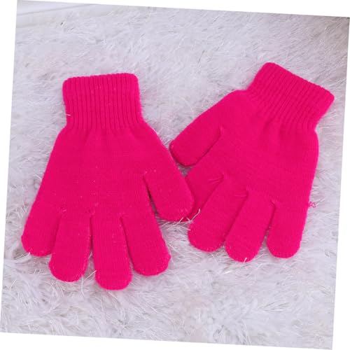 Knitted Gloves Warm Winter Full Finger Stretchy Gloves for Boys and Ages Autumn and Winter Solid Color Cozy Handwear in Rosy 7