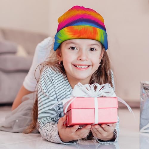 More information about Psychedelic Tie Dye Kids Beanie Hat for for Girls Boys Children Cap Winter Knitted Chemo Cancer Headwear Accessories Gifts Decoration Black