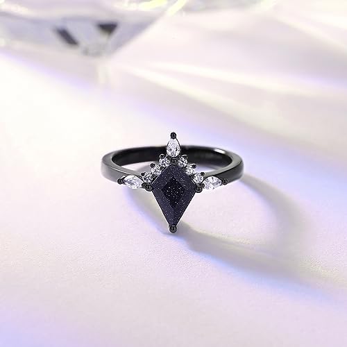 HOT ! Gothic Black Wedding Band with Blue Sandstone - Unique Promise Rings for Women