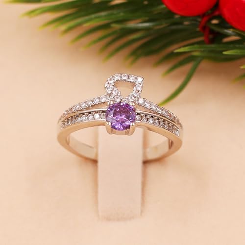 Women's Heart Hollow Ring with Zircon Gemstone | Purple Blue Green Pink Yellow & Multicolor Options | Stylish Crystal Ring for Love Family and Friendship for Valentine's Day Proposal Y2718 7