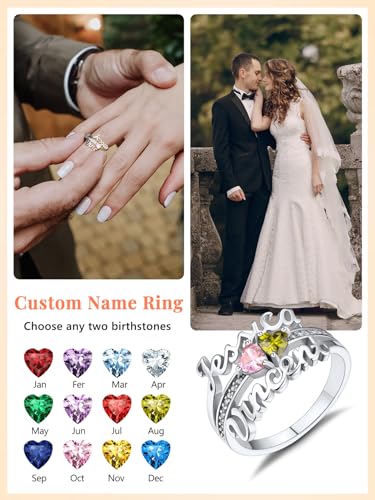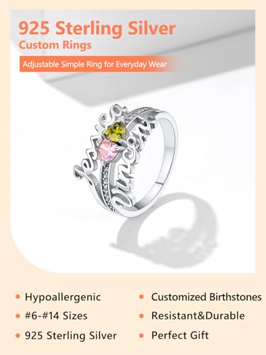 Silvora 925 Sterling Silver Personalized Name Rings Mothers Ring 2 Birthstones Custom Name Ring for Women Memorial Wedding Rings 4