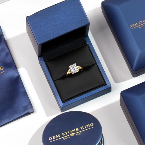 HOT ! Gem Stone King 18K Yellow Gold Plated Silver Gemstone Birthstone Solitaire Engagement Ring for Women | Emerald Cut 9X7MM | Split Shank Design | Wedding Engagement Anniversary Promise Ring | Size 5-9