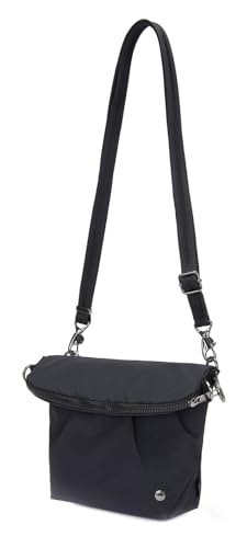 • DIMENSIONS, WEIGHT & WARRANTY - 11.0"H x 10.2"W x 3.2"D, 0.65 lbs. Made of soft, durable, water resistant and easy to clean regenerated Nylon and recycled Polyester to ensure long-lasting usage everyday. Comes with a 5-year Pacsafe warranty.