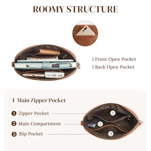 • Smart Organization:Our leather handbags for women offer a roomy main compartment with four pockets—two exterior open pockets, one interior zip pocket, and one slip pocket—keeping your phone, cash, makeup, and daily essentials perfectly organized