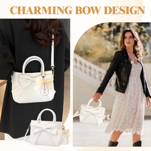 Coquette Purse, Women's Cute White Purse with Bow Charm, Soft Shopper Crossbody Satchel with Adjustable Shoulder Strap, Fashionable and Versatile 1