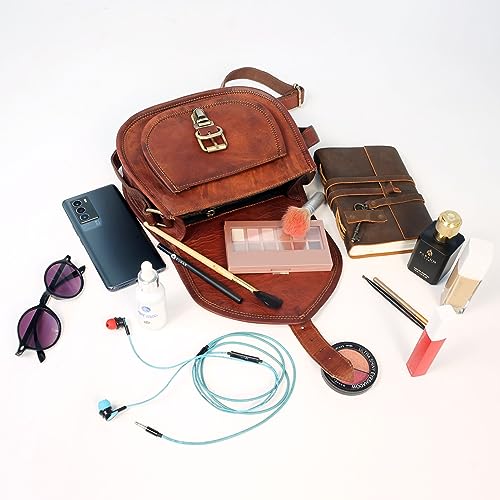 More information about 11-Inch Genuine Leather Crossbody Saddle Bag – Vintage Leather Satchel Purse for Women Handmade Brown Leather Shoulder Bag