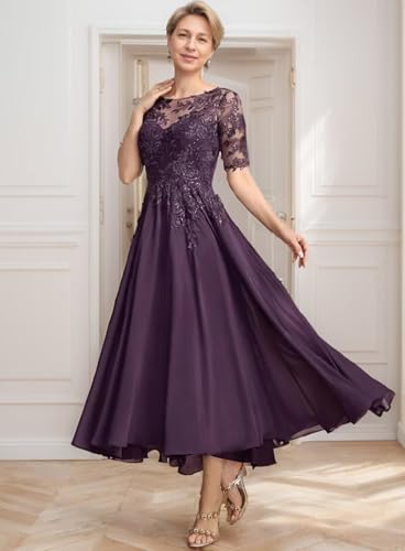 More information about Mother of The Bride Dresses for Wedding Tea Length Lace Chiffon 3/4 Sleeves Formal Evening Gowns
