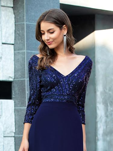 HOT ! Ever-Pretty Women's Elegant Formal Dress V-Neck Long Sleeve Sequin Maxi Chiffon Evening Dresses 00751