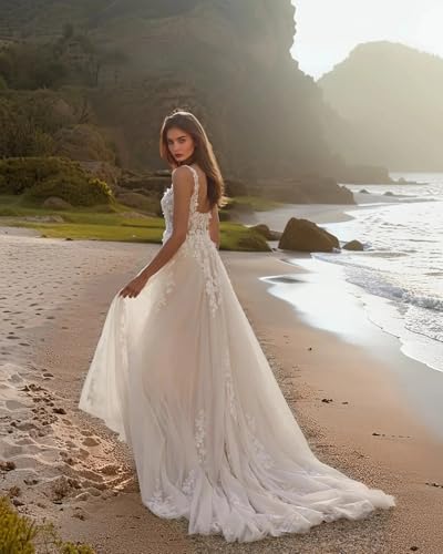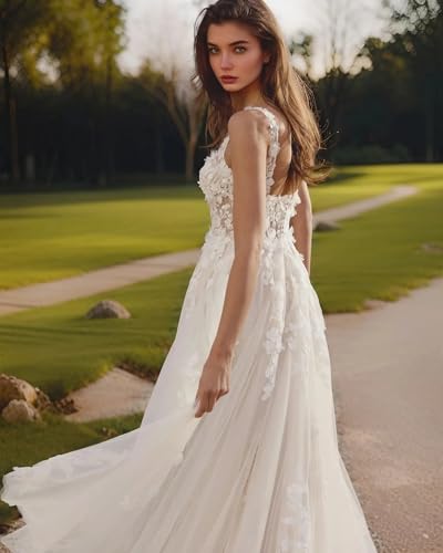 More information about Women's Boho Wedding Dresses for Bride Corset Lace Tiny Florals A-Line Tulle Evening Formal Gowns WD001