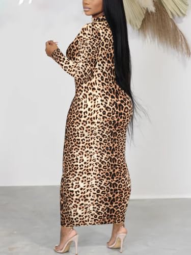 • Design: Fall Dress with long sleeve, mock neck, bodycon fit, ankle length and leopard cheetah print