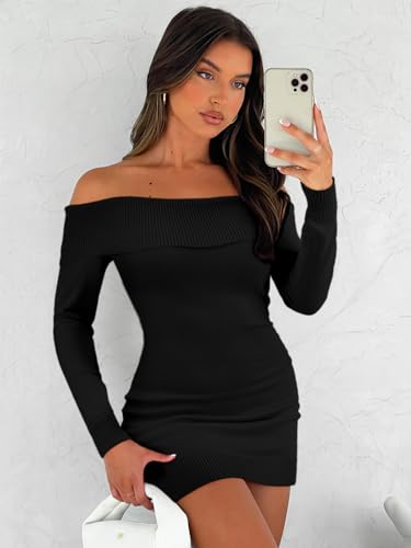 More information about FAIRY SEASON Women's 2025 Off The Shoulder Sweater Mini Dress Long Sleeve Bodycon Cocktail Party Dresses