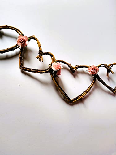 More information about Vine Garland in Hearts and Pink Roses for Rustic Bridal Shower, Weddings in Choice of Length