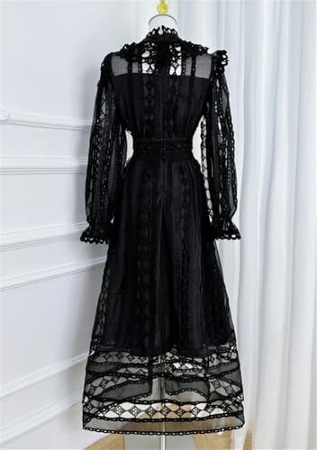 HOT ! Women's Lace Maxi Party Dress - Stand Collar Long Sleeve Hook Embroidery Design