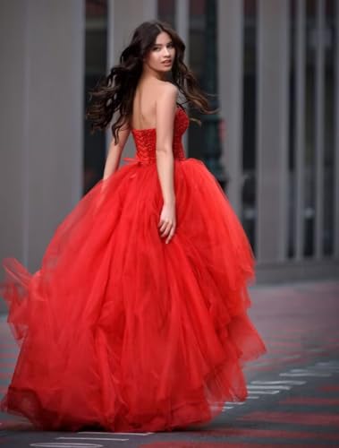 HOT ! Women's Puffy A-Line High-Low Prom Ball Gown Wedding Dress for Bride, Strapless Tulle Quinceanera Dress for Sweet 16