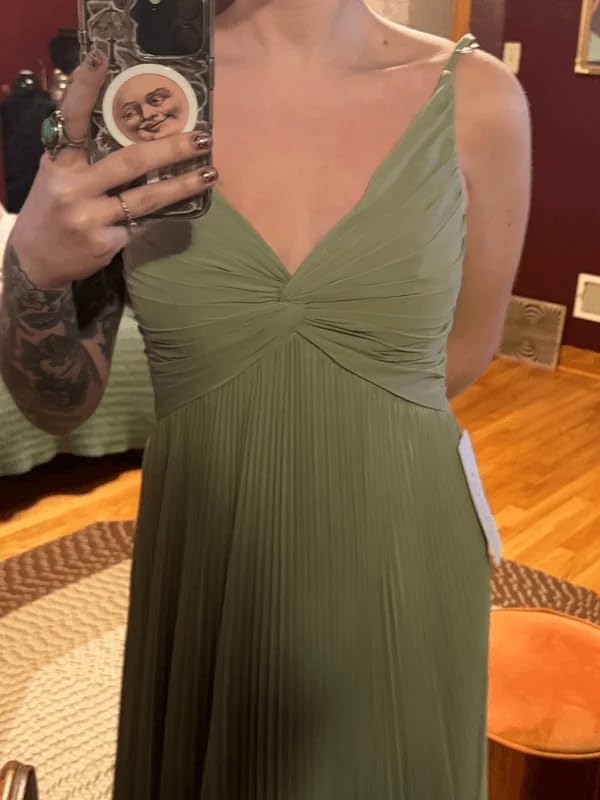 More information about Women's V Neck Pleated Bridesmaid Dresses Long Spaghetti Strap Sleeveless Formal Dress DI255