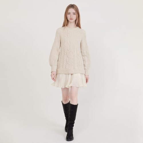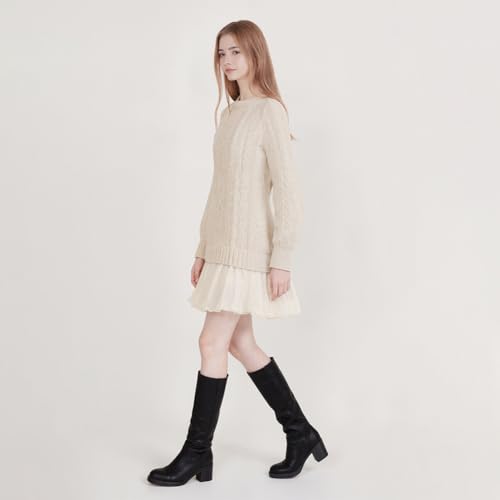 • 【Chunky Knit & Cable-Knit Design】: The bodice features a classic chunky knit with an intricate cable-knit pattern, offering both warmth and style for cooler days. The timeless design adds a touch of texture and sophistication to this women crewneck cable knit sweater mini dress
