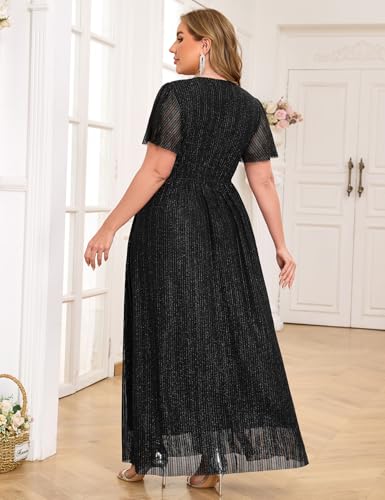 ZOMVA Plus Size Maxi Formal Dress Sparkly V-Neck A-line Ruffle Sleeves Evening Gown Cocktail Prom Lace 5