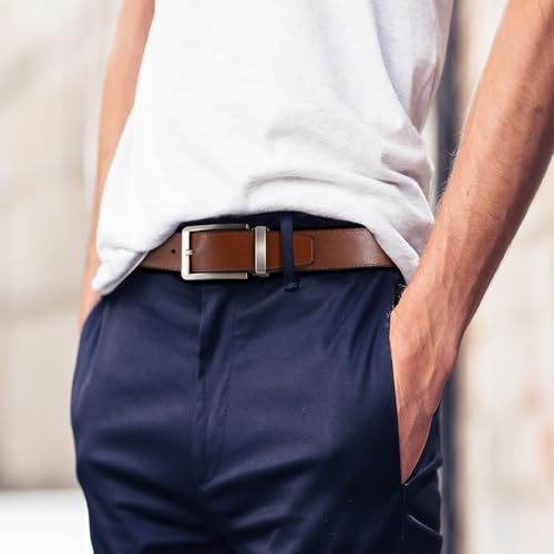 Men Belt Reversible Leather Belts - One Belt, Two Colors 1.35" for Casual Dress Golf, Trim to Fit 1