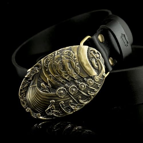 HOT ! Leather belt with brass buckle Viking warship Drakkar; warrior belt buckle; Scandinavian belt buckle; Nordic military buckle;