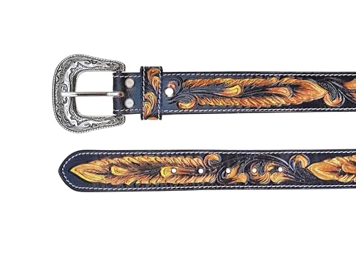 • FINEST QUALITY REAL TOP GRAIN LEATHER: Our western belt is made of genuine full grain leather,with handtooled craft leather design,also ensures a long-lasting wearing and durability.Each belt is a width of 1.5 inches.Our belts fit well for jeans or casual pants.