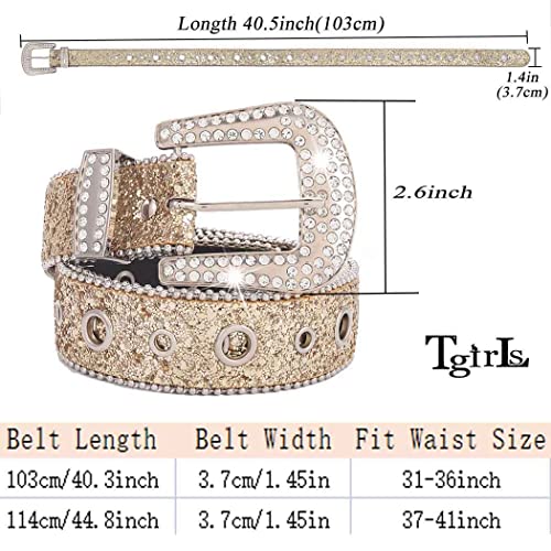 More information about Tgirls Rhinestone Belt for Women Men Sparkly Studded Leather Belt Sequin Waist Belts Vintage Western Cowgirl Belt for Jeans