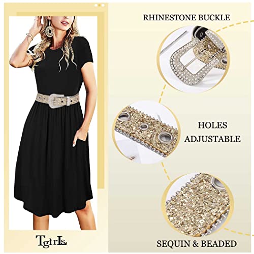 Tgirls Rhinestone Belt for Women Men Sparkly Studded Leather Belt Sequin Waist Belts Vintage Western Cowgirl Belt for Jeans 3