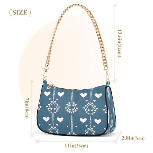 Shoulder Bags for Women White Hearts Tote HandBag Shoulder Bags purse with Chain Zipper Closure 5