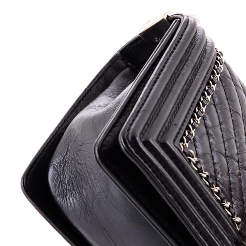 HOT ! Pre-Loved Jacket Boy Flap Bag Chevron Calfskin Old Medium, Black