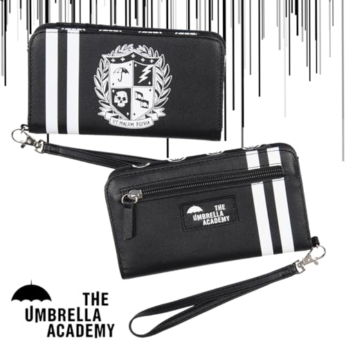 • GREAT DESIGN- This black wallet features a while School crest on one side and an "Umbrella Academy" patch on the other side with two stripes that go all around. The inside features a repeating umbrella pattern design on the main pocket.