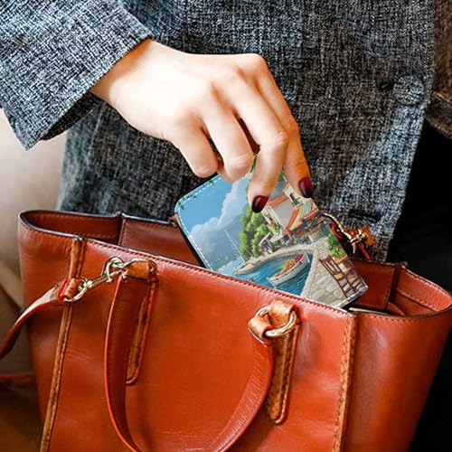 Small Women's Wallets RFID Blocking Credit Card Holders Zip Around Zipper Wallet with Coin Pocket Beautiful Bay Town Scene 5