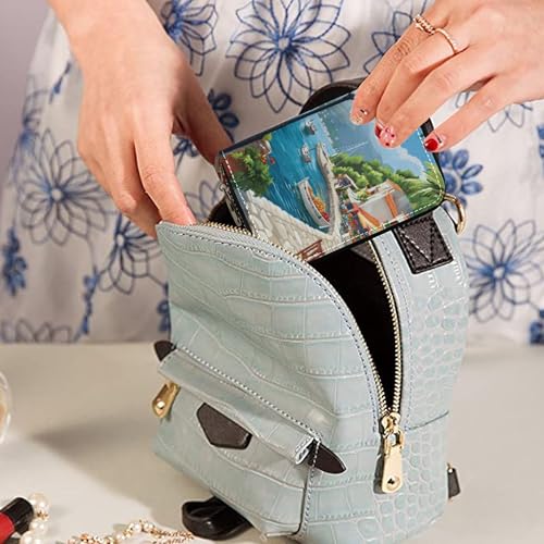 Small Women's Wallets RFID Blocking Credit Card Holders Zip Around Zipper Wallet with Coin Pocket Beautiful Bay Town Scene 6