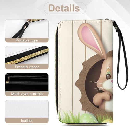 • 【Wristlet Women's Wallet】 The Easter Bunny Wooden Hole purse is made of high-quality PU leather, with sturdy wrist strap, safe and portable, easy to take cards, cash and other things.