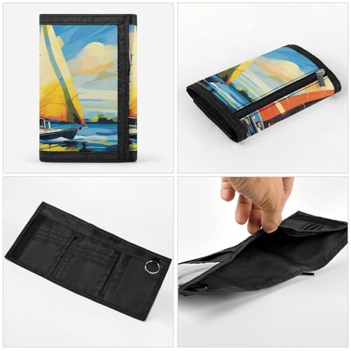 More information about Colorful Sail Boat Trifold Wallet, Card Cases And Money Oganizer Thin Stylish Mini Coin Bag with Zipper Coin Pocket Credit for Men And Women