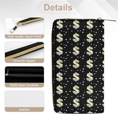 Money Symbol Print Wristlet Wallets for Men Women Leather Purse Clutch Cute Card Holder 7