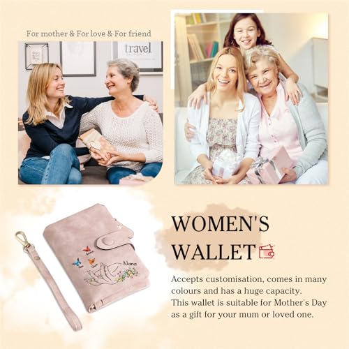HOT ! Christmas Gifts for Mom - Personalized Wallet Women - Custom Hold Hands Wallets for Grandmother - Name Wallet for Her (4 Names)