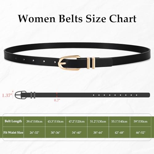 JASGOOD 2 Pack Women Skinny PU Leather Belt Ladies Thin Leather Plus Size Waist Belt for Jeans Dress with Gold Buckle 6