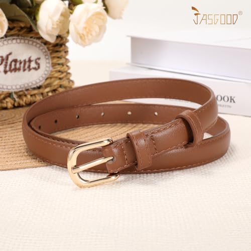 JASGOOD Womens Thin Leather Belt for Jeans Pants Fashion Skinny Faux Leather Belt for Dresses 5