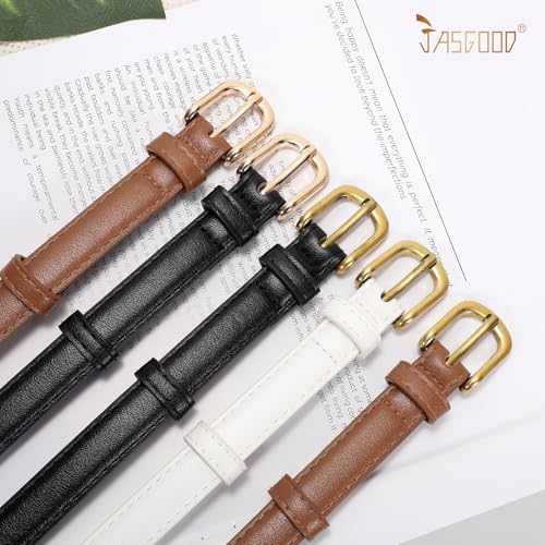 JASGOOD Womens Thin Leather Belt for Jeans Pants Fashion Skinny Faux Leather Belt for Dresses 3