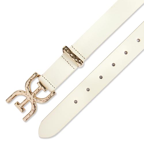 • EFFORTLESS STYLE: Elevate your outfit with the Sam Edelman Women's Hammered Double-E Logo Buckle Belt, a stylish and versatile accessory designed to complement any wardrobe