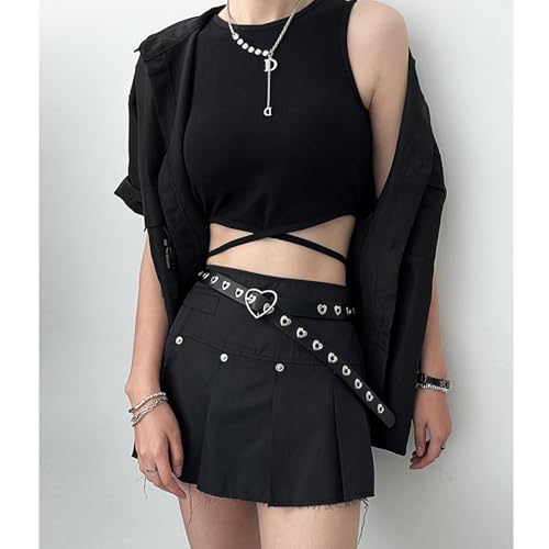 • FASHIONABLE AND UNIQUE COMBINATION: This black grommet leather punk belt and cool rock black heart shaped belt bag are very cool together, the design concept is to mix and match punk style and gothic style with our daily life belts and fanny packs, don't hesitate to match them with your cool outfit or daily dress up. On the other hand, with the buckle, you can turn them into two pieces or into one gothic belt according to your needs.