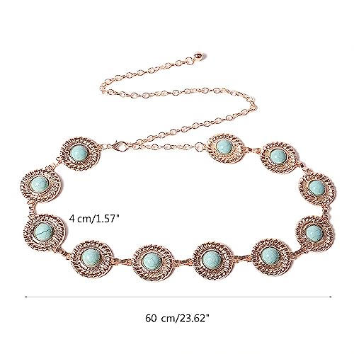 Women Round Turquoises Chain Belt Adjustable Waist Belt Metal Women Dress Belt Shirt Belt for Jeans 6