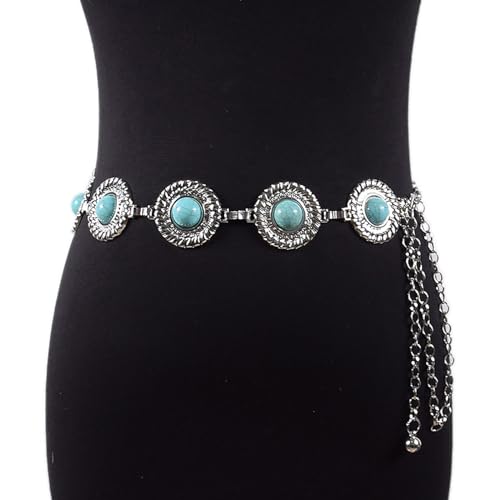 More information about Women Round Turquoises Chain Belt Adjustable Waist Belt Metal Women Dress Belt Shirt Belt for Jeans