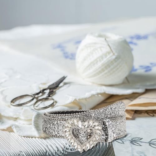 Yiju Womens Rhinestone Belt PU Leather Belt Cowgirl Bling Diamond Belt Heart Buckle Waist Belt for Pants Jeans Costume Accessories 7